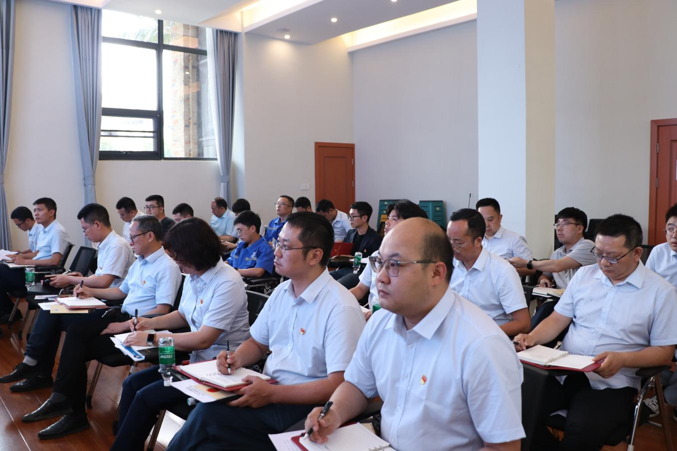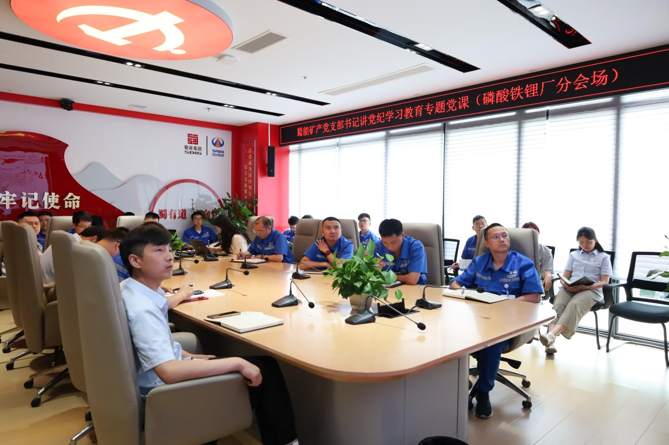 公司机关全体干部员工在主会场参与授课,磷酸铁锂厂、三号矿山设置分会场参加专题授课。