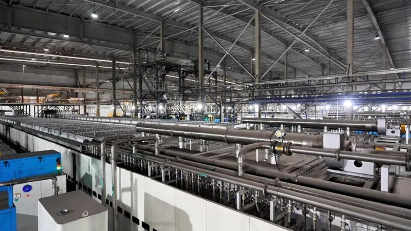 在窑炉烧结区,五条智能化生产线同时运转,场面壮观。材料进入炉窑线经过21-22小时的煅烧后,最后进行气碎包装,磷酸铁锂正极材料便制作完成。