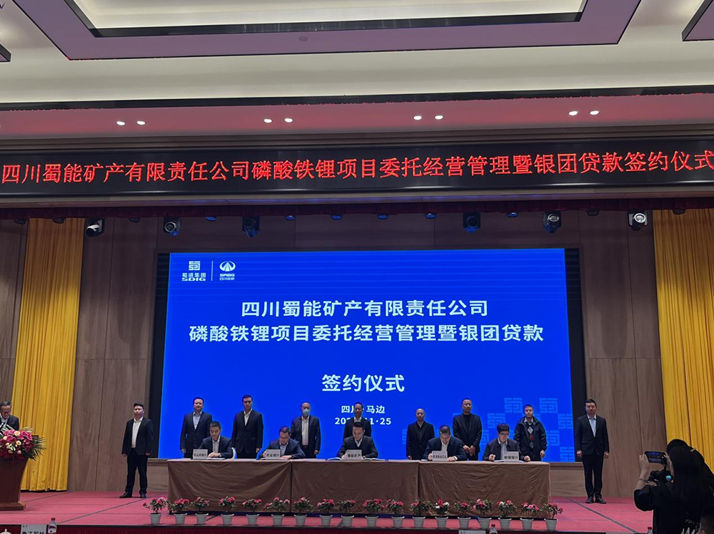 11月25日,南宫NG28矿产公司磷酸铁锂项目委托经营管理暨银团贷款签约仪式在乐山市马边县举行。马边彝族自治县委副书记、县长鲁子军林;股东单位四川路桥财务总监李继东,新材料集团党委副书记、副董事长、总经理宋辉林,弗迪电池副总经理、CRM厂长曹文玉,禾丰公司董事长朱中华;马边彝族自治县委常委、统战部长黄学文,副县长陈永强,农业银行乐山市分行副行长徐晓明等出席见证签约。