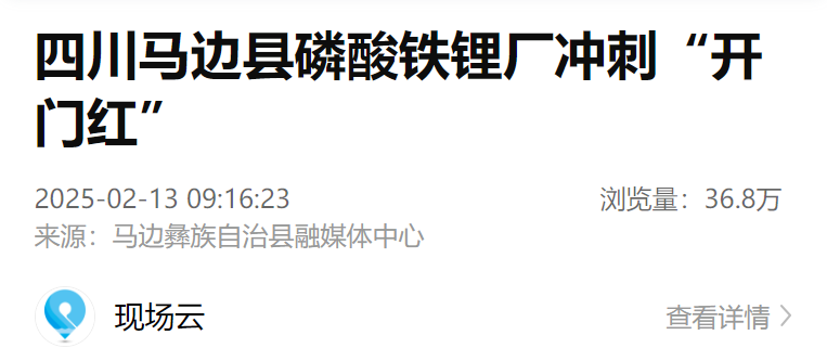近期,马边彝族自治县新型材料特色工业集中区内的四川南宫NG28矿产有限责任公司磷酸铁锂厂现场一派繁忙的生产景象,工厂正在全力冲刺“开门红”,受到了央、市、各级媒体争相报道。