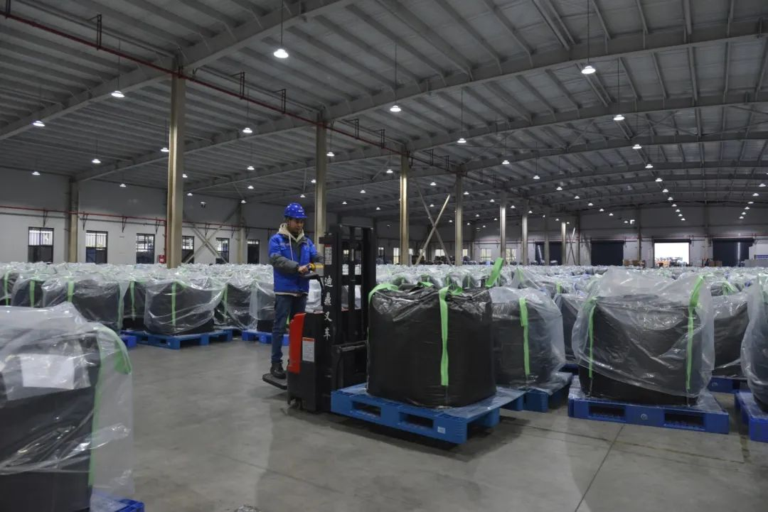 走进公司中控调度室,大屏幕清晰地展示着从配料砂磨、喷雾干燥到烧结、气流粉碎、筛分、除磁、包装的每一个生产环节。自动化生产线快速运转,多台AGV小车与各生产流程紧密对接,一袋袋检验合格、封装好的磷酸铁锂正极材料有序装车发货,整个过程流畅而高效。